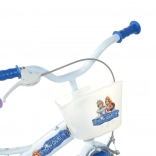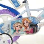 Vélo pour enfants 12" léger et stable de Dino Bikes au style Reine des neiges, remarquable par son équipement riche et sa conception sûre. Il possède des pneus pleins sans risque de crevaison, un frein avant et un pédalier à transmission fixe (pédalage continu) pour des démarrages faciles. Sont inclus roulettes stabilisatrices, panier et siège pour poupée. Idéal pour les enfants mesurant 87–110 cm, poids 6,5 kg, charge maximale 40 kg.