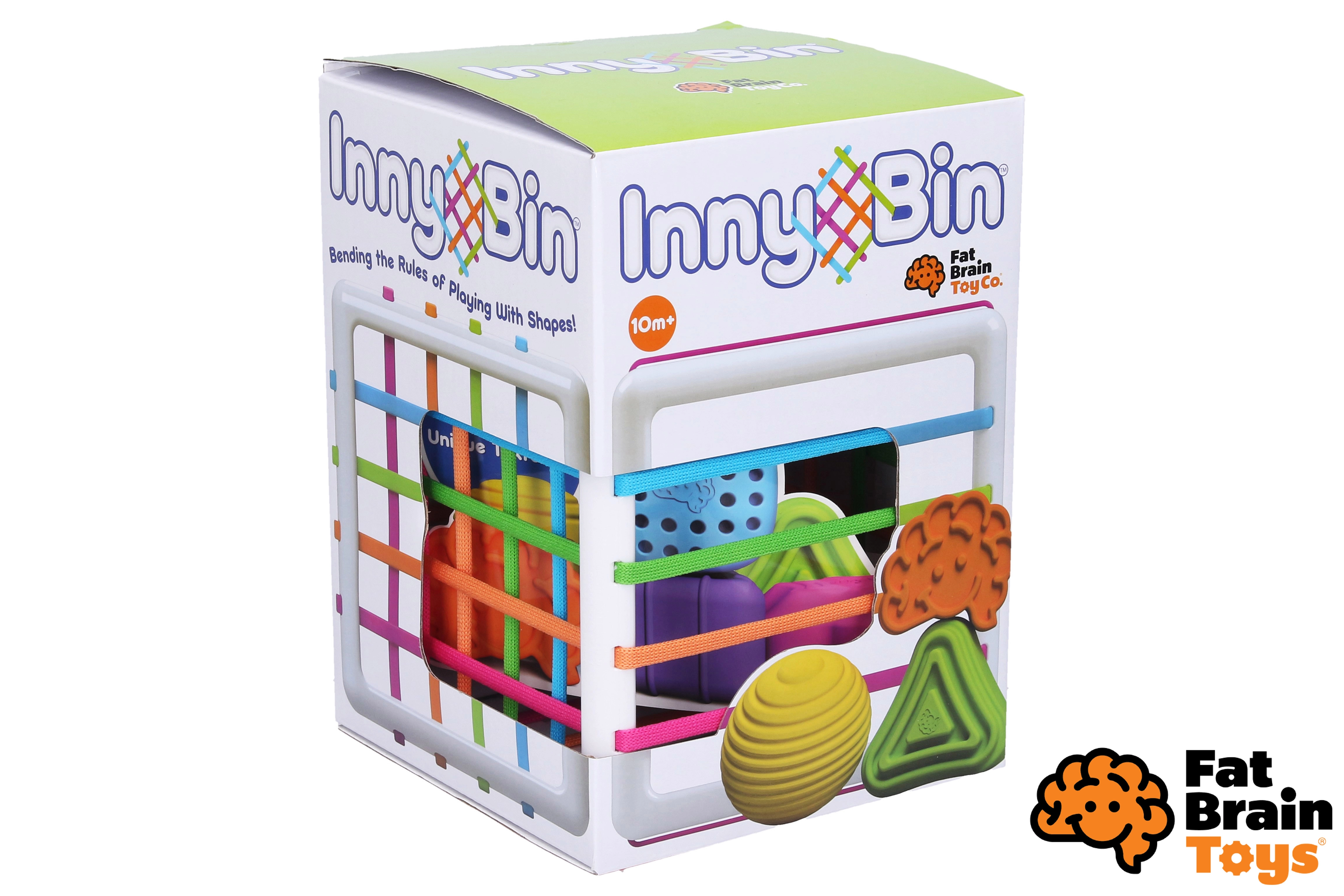 InnyBin de FAT BRAIN est une boîte d’encastrement moderne qui transforme le tri classique des formes en un jeu sensoriel interactif. Les enfants peuvent presser, saisir, insérer et retirer les formes à travers les cordons élastiques colorés – sans devoir viser un trou précis. Cela développe l’agilité des petits doigts, la patience et la curiosité naturelle.