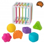 Insérer et retirer les blocs à travers les parois élastiques du cube est un excellent divertissement et une expérience sensorielle.
