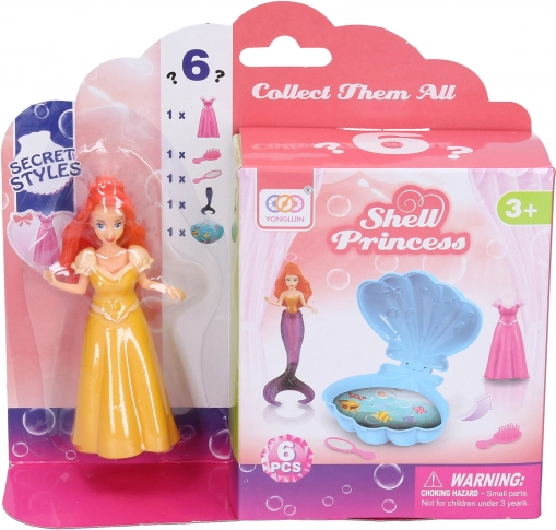 Découvrez le monde magique sous-marin avec l’adorable jouet sirène avec coquillage de 9,5 cm. Le set comprend une sirène, un coquillage ouvrant, une petite robe, un miroir et un peigne. Disponible en 3 coloris de coquillage – jaune, bleu et violet.