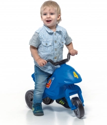 Légère draisienne SUPER BIKE mini à trois roues, en bleu, pour les premières sorties. Elle offre une stabilité grâce à ses 3 roues, des dimensions compactes 57×28×41 cm et une charge maximale de 25 kg.