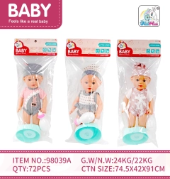 Ce bébé est parfait pour les enfants à partir de 3 ans. Grâce à sa taille compacte de 35 cm, il est facile à transporter et idéal pour les jeux du quotidien. Il offre un aspect et un toucher réalistes, aidant ainsi les enfants à développer leur imagination et leur sens des soins envers autrui. En plus du bébé, le set comprend un pot et un biberon.