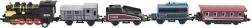 Ce set de petits trains avec locomotive et quatre wagons ravira tout amateur de chemins de fer. Grâce à la combinaison de pièces en métal et en plastique, les modèles paraissent réalistes tout en résistant aux jeux enthousiastes des enfants. Chaque élément a une longueur compacte de 8 cm, ce qui tient facilement en main et sur un circuit à la maison.