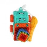 Avec cet ensemble coloré pour le sable, votre enfant passera des heures de plaisir sur la plage ou dans le bac à sable. L'ensemble comprend une voiture avec partie de chargement, une pelle, un râteau et 4 moules pour sable. Tout est fait en plastique durable et se transporte facilement dans un filet pratique. Idéal pour développer la motricité et la créativité.