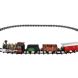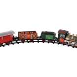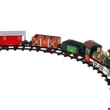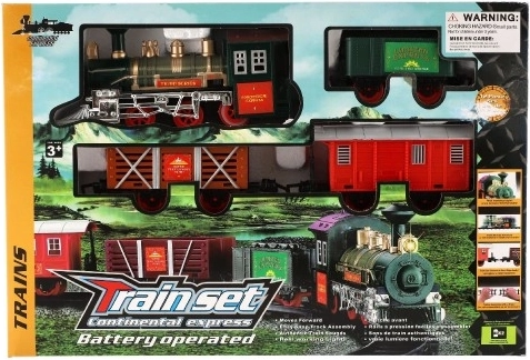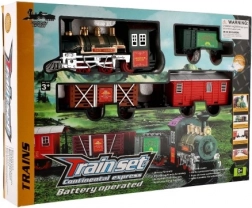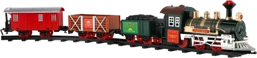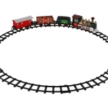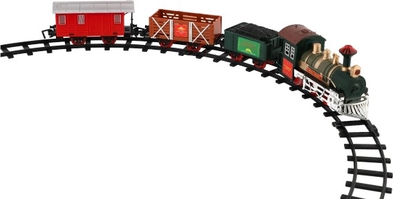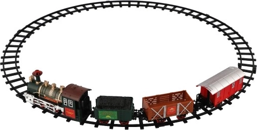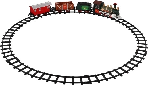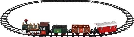 L'emballage inclut 8 morceaux de voies, permettant la création d'un circuit de 107 cm. La voie se compose de 6 courbes et 2 lignes droites. Il faut 2 piles AA pour la locomotive (non incluses).