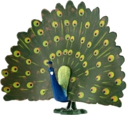 Cette figurine en plastique réaliste représente un majestueux paon bleu huppé aux couleurs accentuées et à la couronne caractéristique sur la tête. Grâce à ses détails soignés, vous apprécierez les typiques « yeux de paon » sur les couvertures ainsi que le contraste entre le corps bleu et les plumes vertes.
