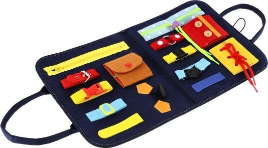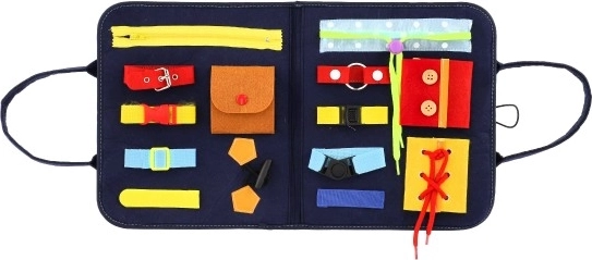 Pratique et ludique, la planche motrice en feutre avec diverses fermetures offre des heures de découvertes aux enfants. Grâce à des activités comme les fermetures éclair, les boutons, les boucles et les velcros, ils développent leur motricité fine, leur patience et leur autonomie pour s'habiller. Idéale en voyage comme à la maison, facile à transporter et résistante.