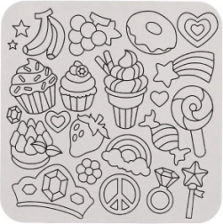 Contient diverses feuilles et autocollants avec des motifs comme des cupcakes et des fleurs.