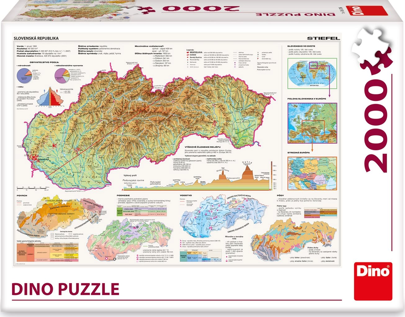 Reconstituez la Slovaquie avec notre superbe carte puzzle de 2000 pièces. Un outil utile pour tous les âges mettant l’accent sur les contextes géomorphologiques et mondiaux.