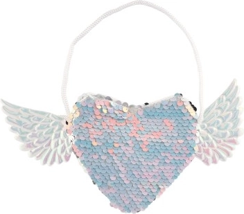 Le Sac à Main Cœur avec Ailes et Paillettes est le choix idéal pour chaque petite fashionista. Grâce à sa forme originale de cœur avec des ailes et ses paillettes changeant de couleur, il devient un superbe accessoire de mode.