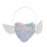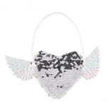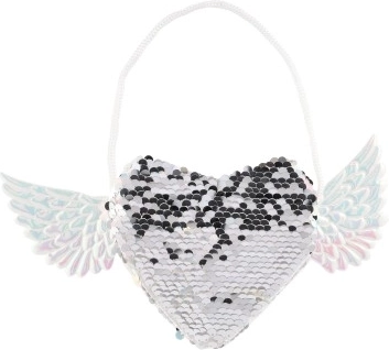 Ajoutez une touche unique à votre tenue avec ce sac à main enchanteur en forme de cœur et ailes sur les côtés. Changez la couleur des paillettes selon votre humeur - choisissez entre une combination argentée élégante ou un jeu de couleurs rose-bleue amusant. Le sac est idéal pour ranger les petits objets que vous souhaitez avoir sous la main.