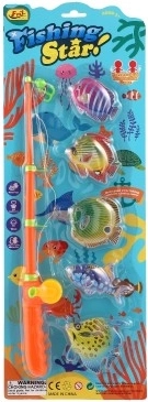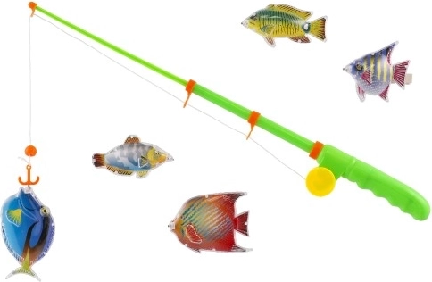 - 1× canne avec aimant, 5× poissons 3D colorés
