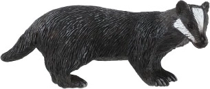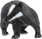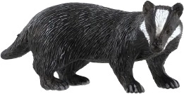 Cette figurine représente le blaireau européen (Meles meles) avec ses bandes blanches caractéristiques sur la tête et son corps sombre. Grâce à ses détails réalistes, elle aide les enfants à reconnaître facilement l'espèce et à enrichir leurs connaissances sur les animaux de la forêt, que ce soit en cours ou en jouant.