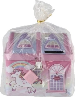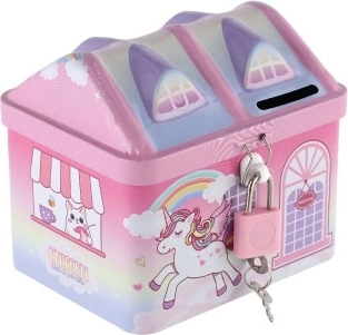 Cette tirelire amusante et colorée en forme de maison est un cadeau idéal pour les enfants qui souhaitent stocker leurs économies en toute sécurité. Cette maison en métal avec motif de licorne et arc-en-ciel protège non seulement leurs trésors, mais embellit aussi la chambre des enfants.