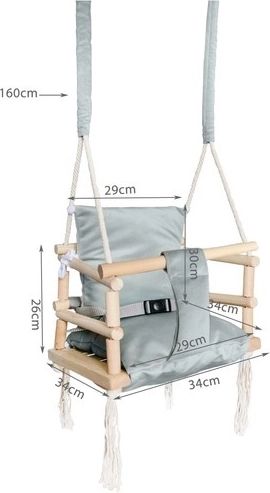 Grâce à son design minimaliste et à des matériaux de qualité, elle complète à merveille un intérieur moderne. L’installation est simple, et les cordes de 10 mm de diamètre assurent une suspension fiable. La balançoire est destinée aux enfants qui savent déjà s’asseoir seuls, avec une capacité de charge allant jusqu’à 25 kg.