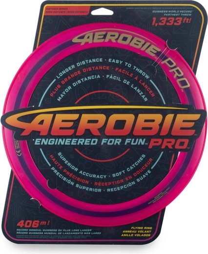 Dans les jeux de disque, rien n’égale les performances de l’Aerobie Pro Ring. Cet anneau a été utilisé pour battre le record du monde de lancer, atteignant une distance incroyable de 406 mètres. Grâce à son design fin et à son diamètre de 33 cm, il peut être lancé très loin. Il possède en outre des bords souples pour une prise en main confortable. Son centre ouvert permet à chaque joueur d’avoir son propre style de lancer et de réception. Disponible en plusieurs couleurs, vendues séparément. Remarque : cet anneau ne flotte pas sur l’eau. Âge 12+.
