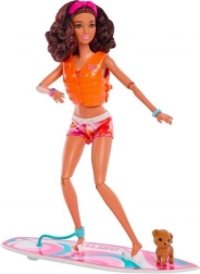 La poupée Barbie est conçue pour des scènes de jeu palpitantes à la plage, avec du fun de surf et des aventures, le petit chiot à bord.
