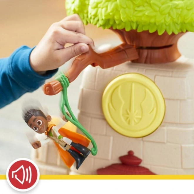 - Éléments interactifs – panneaux Force push, toboggan-liane et pierres « flottantes » pour un jeu créatif.