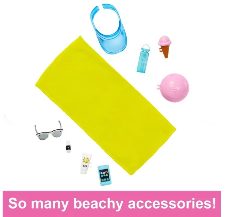 Créez des histoires d’été pleines de soleil et de fun avec Ken prêt pour la plage. Une tenue bleue stylée, une chemise légère et des accessoires thématiques offrent d’infinies possibilités de jeu et de narration. Grâce à des détails comme le logo sur les claquettes ou le cornet de glace clipsé, les scènes semblent réalistes et ludiques.