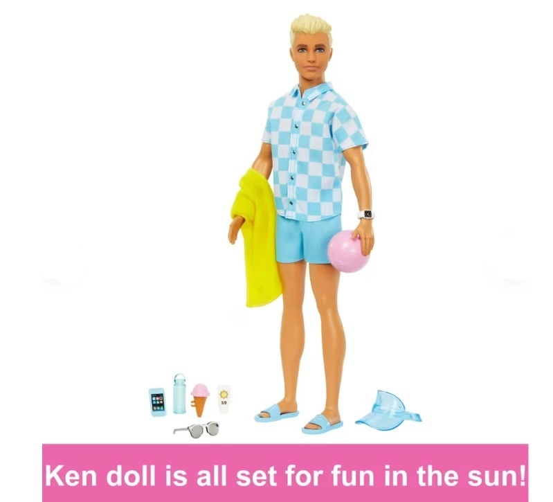 Ken est le compagnon parfait pour les aventures sur la plage – de la détente sur la serviette aux jeux avec le ballon de plage. Des accessoires comme la visière, les lunettes de soleil ou la crème solaire encouragent le jeu imaginatif et le développement des compétences sociales.