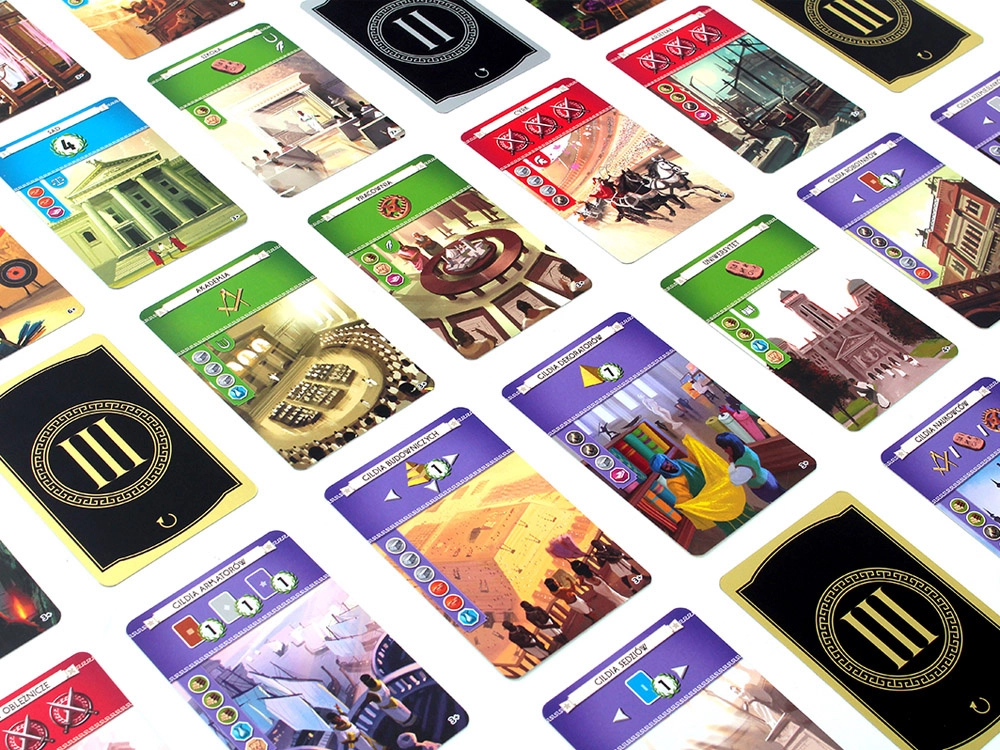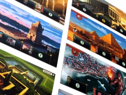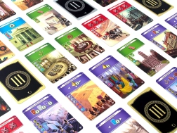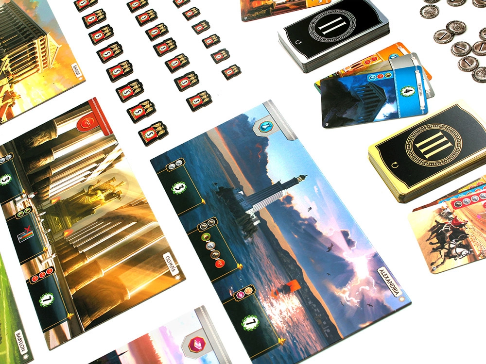 Chaque joueur dirige sa propre cité avec une Merveille du Monde unique divisée en plusieurs étapes. Leur achèvement procure de puissants bonus, des effets spéciaux et des points supplémentaires. Grâce à une iconographie claire, des cartes lisibles et des plateaux robustes, le jeu s’apprend facilement et se joue avec fluidité.