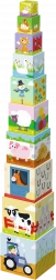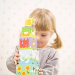 Explorez l’univers de la ferme et apprenez en jouant. Les illustrations colorées d’animaux, les chiffres et les scènes de la vie quotidienne à la ferme captivent les enfants et développent naturellement la perception des dimensions, l’imagination et la mémoire. Avec les cubes, on érige facilement une tour stable jusqu’à 86 cm, des enclos pour les animaux ou des ponts – la seule limite est l’imagination.