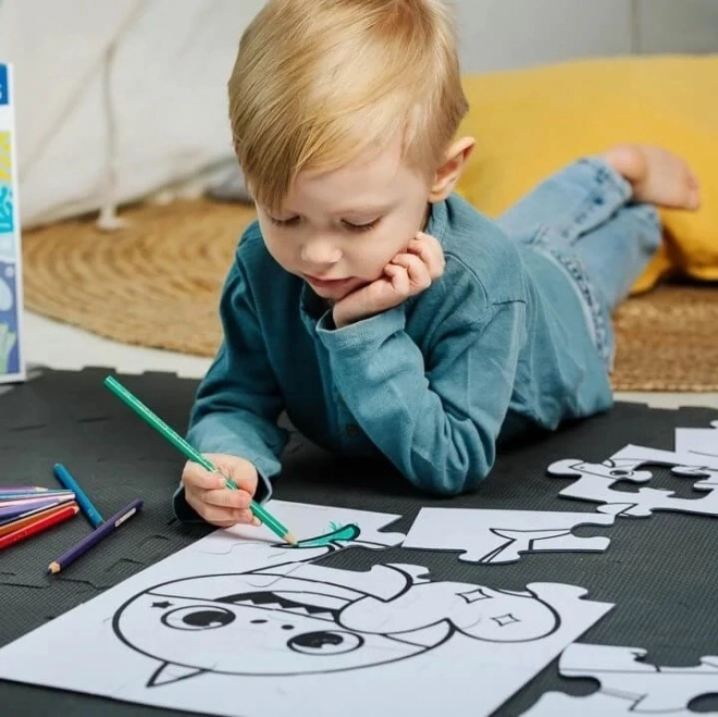 Au verso du puzzle, vous trouverez deux activités supplémentaires : des coloriages et un petit jeu avec des éléments de coloriage, qui favorisent l’expression créative et développent la sensibilité artistique des enfants.