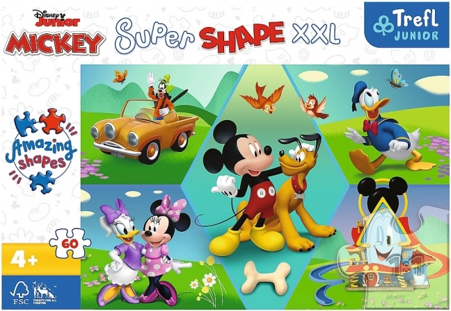 Puzzle grand format Super Shape avec le motif MICKEY MOUSE proposant 60 pièces XXL, parmi lesquelles se trouvent aussi des pièces de formes atypiques. Grâce aux pièces plus grandes, ils se composent facilement, développent la motricité fine et apportent beaucoup de divertissement pour les enfants.
