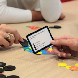Les règles sont on ne peut plus simples, une partie ne dure que 20 à 60 minutes et le jeu se joue à 2 à 4 joueurs à partir de 8 ans. Idéal pour les soirées en famille, les fêtes et les retrouvailles entre amis – il brise la glace et provoque des moments à la fois sincères et hilarants.