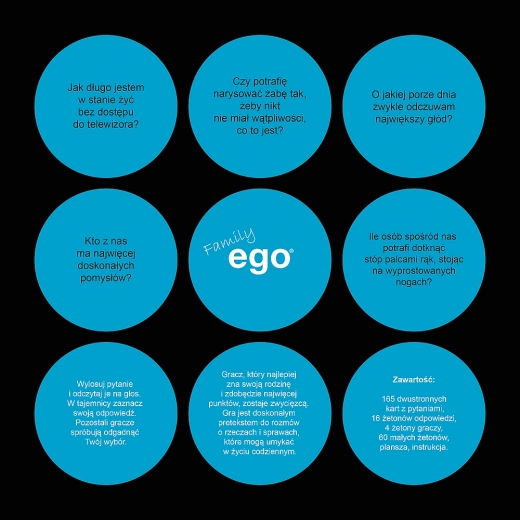 Découvrez à quel point vous connaissez vraiment votre famille ! Trefl EGO Family est un jeu de soirée familial dynamique avec plus de 330 questions, où vous choisissez secrètement vos réponses et les autres tentent de les deviner. Grâce à des règles simples, un rythme soutenu et des thèmes amusants, vous favoriserez la communication, l’empathie et les relations mutuelles – avec à la clé de nombreuses surprises et beaucoup de rires.