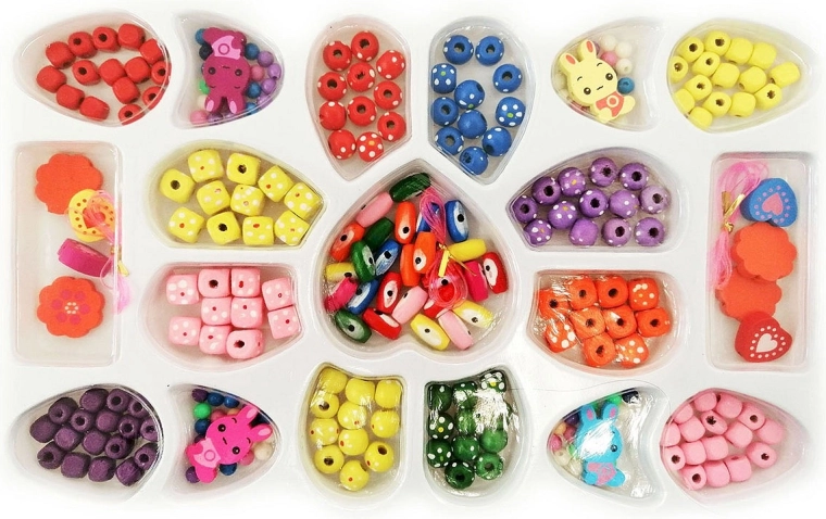 Créez des colliers et bracelets uniques avec un kit de perles en bois. Idéal pour enfants et adultes – enfilage facile, possibilités de design illimitées et développement de la créativité et de la motricité fine.