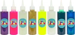 - 8 couleurs vives avec possibilité d’extension avec d’autres teintes (néon, paillettes, phosphorescentes – vendues séparément).
