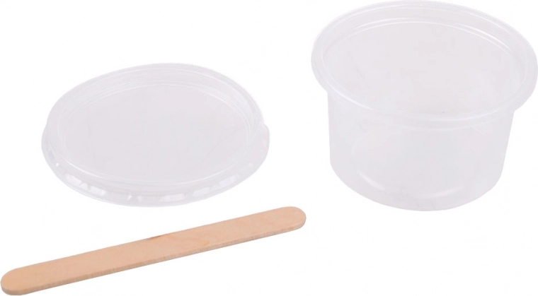 Le gobelet transparent avec couvercle garde le slime frais et malléable. La spatule en bois assure un mélange propre et confortable.
