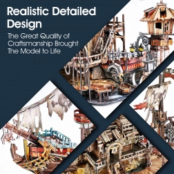 Partez pour la légendaire Tortuga et construisez votre propre port pirate. Ce modèle 3D détaillé de 218 pièces offre une activité familiale amusante sans colle ni ciseaux. Les pièces en mousse rigide de 3 mm avec impression laminée assurent stabilité et bel aspect. Avec une difficulté de 5/7 et un temps de construction de 180–220 minutes, c’est un défi idéal pour petits et grands bâtisseurs.