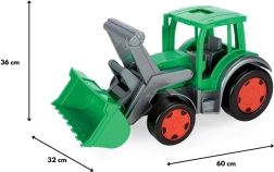 Tracteur massif de 60 cm de long avec chargeur, dans des couleurs de ferme originales.