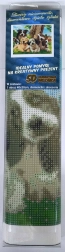 - Toile préimprimée avec couche adhésive, stylet d’application, plateau, cire, assortiment de strass colorés, légende des symboles