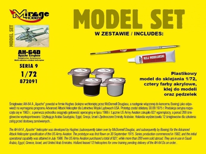 Idéal pour enrichir une collection d’aéronautique moderne, le modèle procure une expérience de maquettisme agréable avec un accent sur les détails réalistes et le radar Longbow caractéristique.