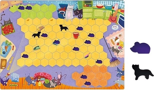 De sournoises souris essaient d’atteindre le garde-manger plein de provisions. Elles doivent rester sur leurs gardes et se méfier de deux chats qui tentent de les attraper. Le ménage est en cours dans la cuisine, les souris peuvent donc se cacher derrière un seau ou une brosse et rester immobiles sous le balai. Les souris parviendront-elles à berner les chats et à atteindre le garde-manger ? Des règles simples, de la stratégie et la compétition entre joueurs garantissent un divertissement palpitant !