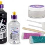 Découvrez le divertissement spatial avec DIY Slime Galaxy XL, qui émerveillera chaque enfant par son unicité. Regardez comment le slime noir devient une masse cosmique avec des millions de paillettes scintillantes.