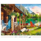 - Magnifique motif d’un chalet à la montagne avec lac pour une ambiance agréable pendant l’assemblage.