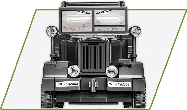 La boîte contient 439 pièces et deux figurines – un soldat de la Luftwaffe et un soldat d’infanterie – équipés d’accessoires tels que des armes, des casques et des chargeurs. Le modèle s’intègre parfaitement à votre collection aux côtés des véhicules BLITZ ou HORCH de la gamme COBI Historical Collection. Le montage est fluide et amusant grâce au manuel clair – idéal pour étoffer votre collection historique.