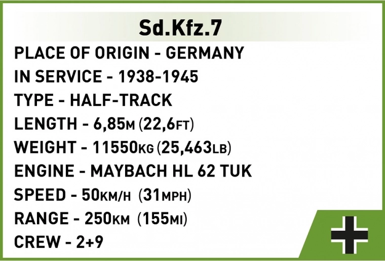 - Apparence authentique du Sd.Kfz. 7 semi-chenillé avec éléments mobiles.