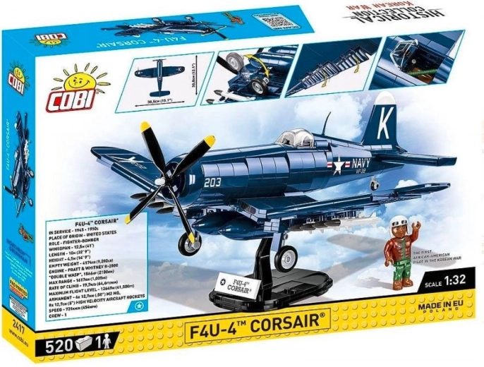 Le légendaire chasseur embarqué de la Seconde Guerre mondiale et de la guerre de Corée arrive dans une interprétation précise signée COBI. Le Corsair est célèbre pour ses ailes « cassées », ses excellentes qualités de vol et son service au sein de la US NAVY. Cette maquette sous licence officielle Northrop Grumman restitue fidèlement les détails de l’appareil à l’attrayante échelle 1:32 avec des impressions couleur durables.