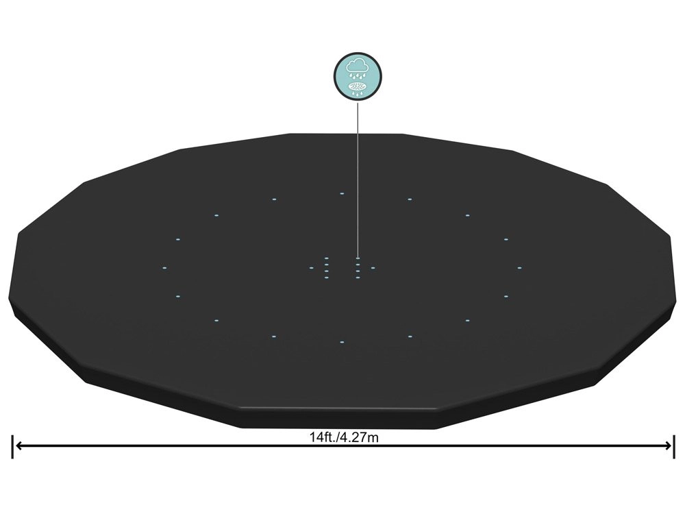 Des orifices de drainage intégrés évacuent en toute sécurité l’excès d’eau de pluie à la surface, évitant l’affaissement et assurant un meilleur maintien. La bâche sert également de mesure de sécurité supplémentaire contre les chutes accidentelles d’enfants ou d’animaux de compagnie dans la piscine.