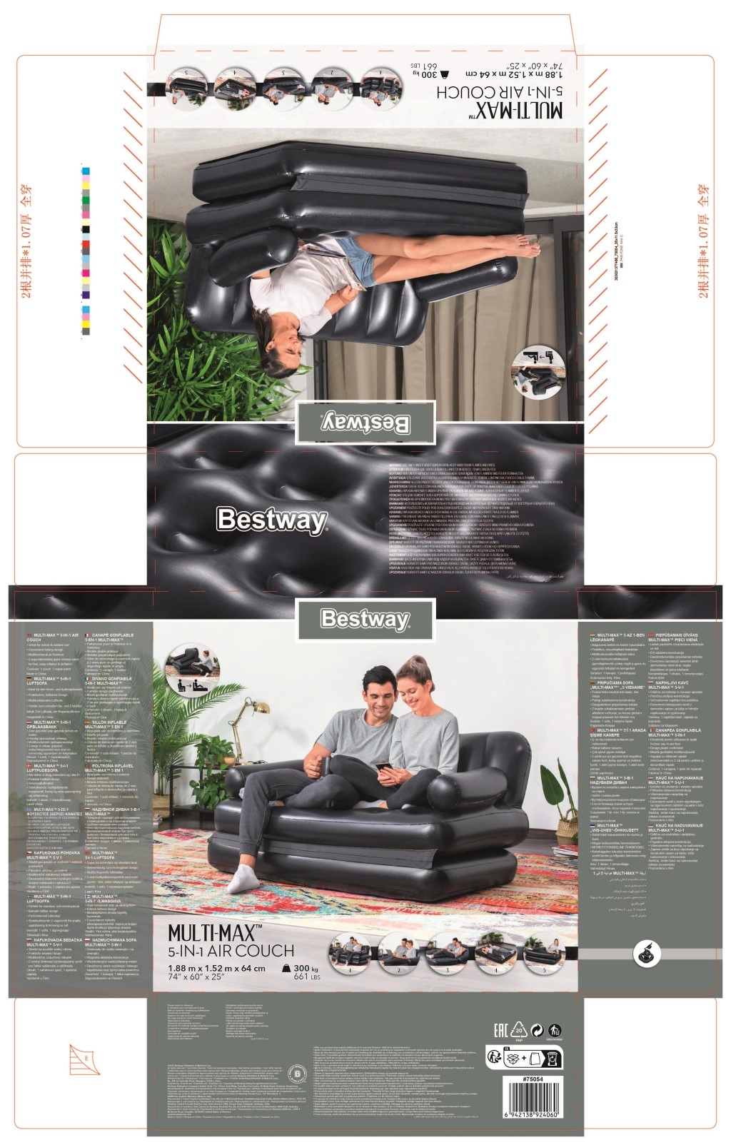 Le canapé gonflable BESTWAY 5 en 1 est la solution idéale pour le salon, la chambre d’amis ou un logement étudiant. Grâce à sa conception modulaire astucieuse, il se transforme en un clin d’œil d’un canapé deux places confortable en chaise longue ou en lit double complet. La surface au toucher velours avec compartiments accroît le confort en position assise comme allongée.