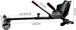 Le cadre robuste en métal et matériaux résistants est conçu pour une utilisation sûre et durable. Le réglage fluide de la longueur 40–60 cm permet d’ajuster précisément à la morphologie du pilote, tandis que la roue avant pivotante assure une manœuvrabilité tout en douceur. Le montage est rapide et sans outils : à l’aide de colliers résistants et de sangles réglables à velcro, vous fixez facilement l’accessoire à différents types de hoverboards.
