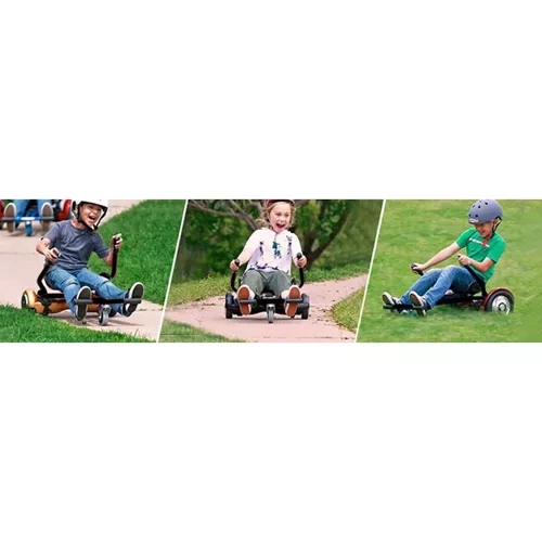 Profitez d’un nouveau niveau de fun : l’accessoire transforme votre hoverboard à deux roues en un kart bas, stable et très maniable. Grâce au pilotage intuitif par deux leviers, vous accélérez, freinez et tournez facilement. Le siège ergonomique et les poignées en mousse antidérapantes améliorent confort et confiance pendant la conduite.