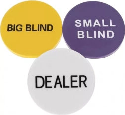 Les jetons DEALER, SMALL BLIND et BIG BLIND assurent des tours clairs et le déroulement fluide de chaque partie.