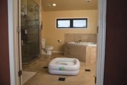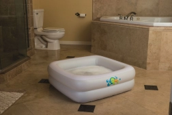 Le fond gonflable intégré offre confort aux enfants assis ou en train de jouer, tout en aidant à réduire le risque de glissade pendant le bain ou les éclaboussures.