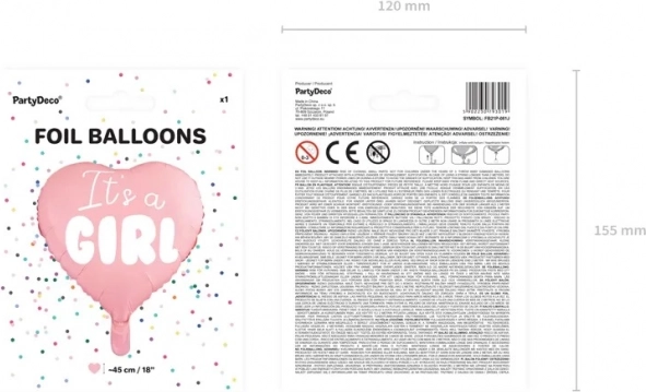 Ce magnifique ballon en aluminium en forme de cœur avec l'inscription It's a Girl est la décoration parfaite pour célébrer la naissance d'une fille. Il va vous éblouir avec sa couleur rose douce et son design élégant.